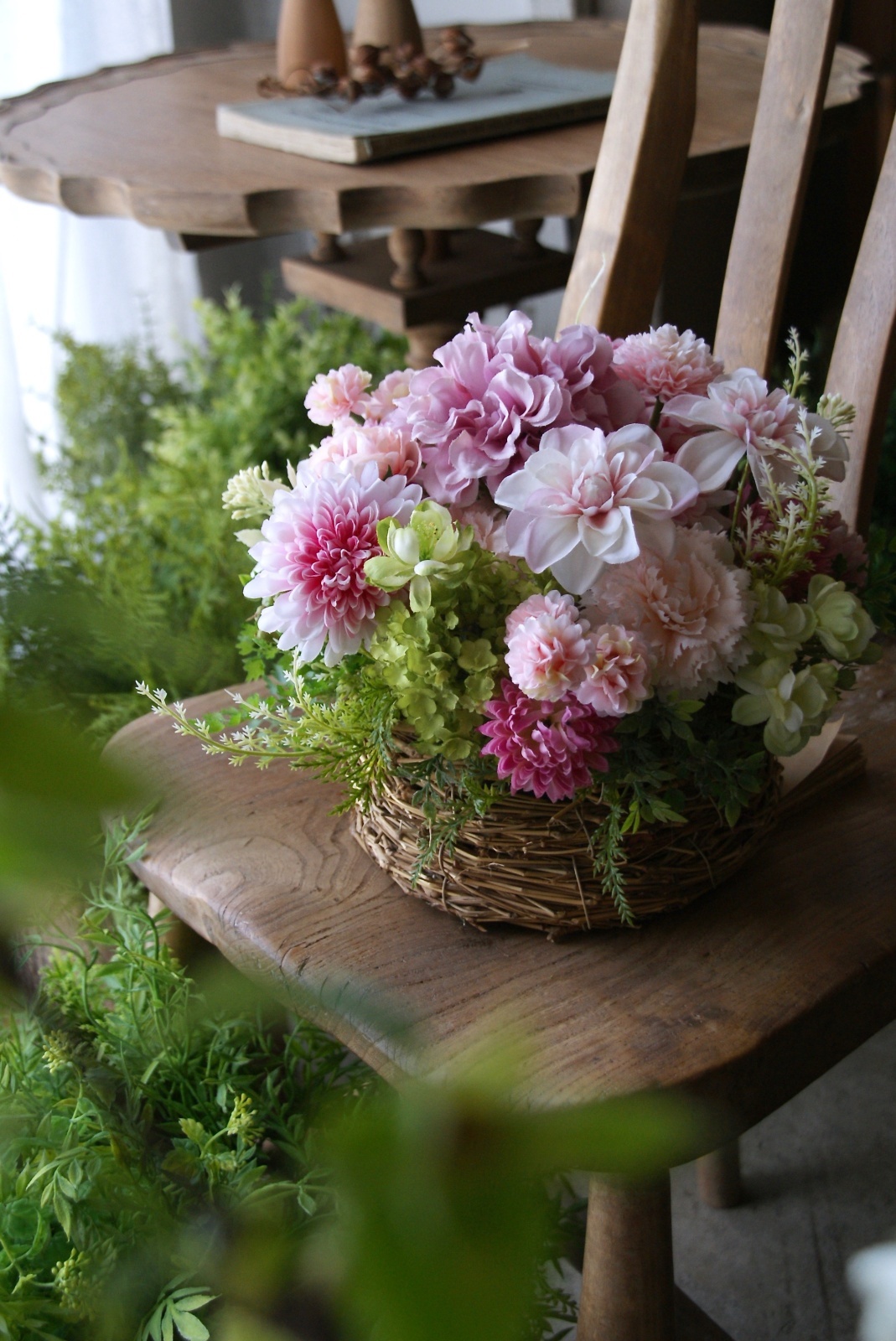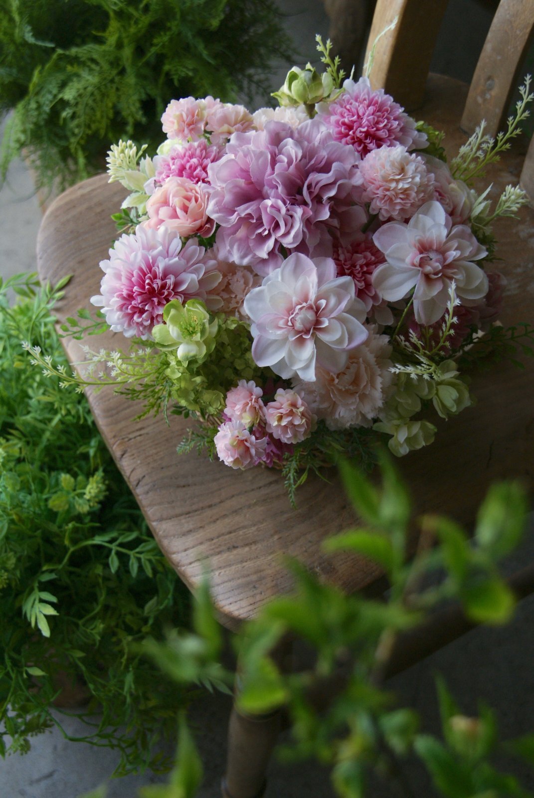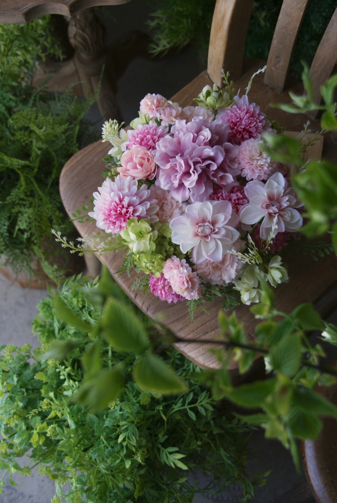 | 花 材 | ダリア、カーネーション、ビバーナムスノーボール、マム、ジャスミン、アジアンタムなど |