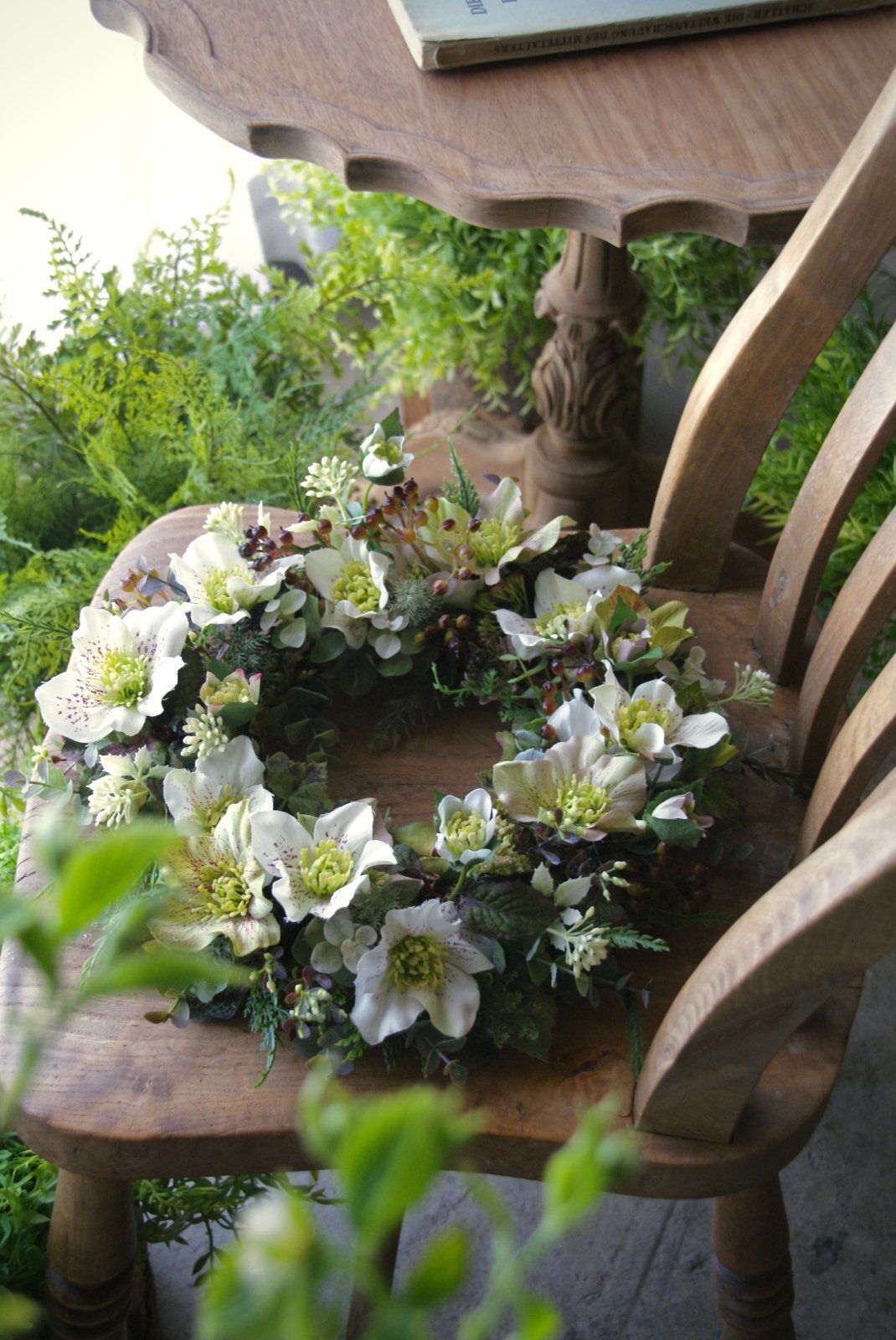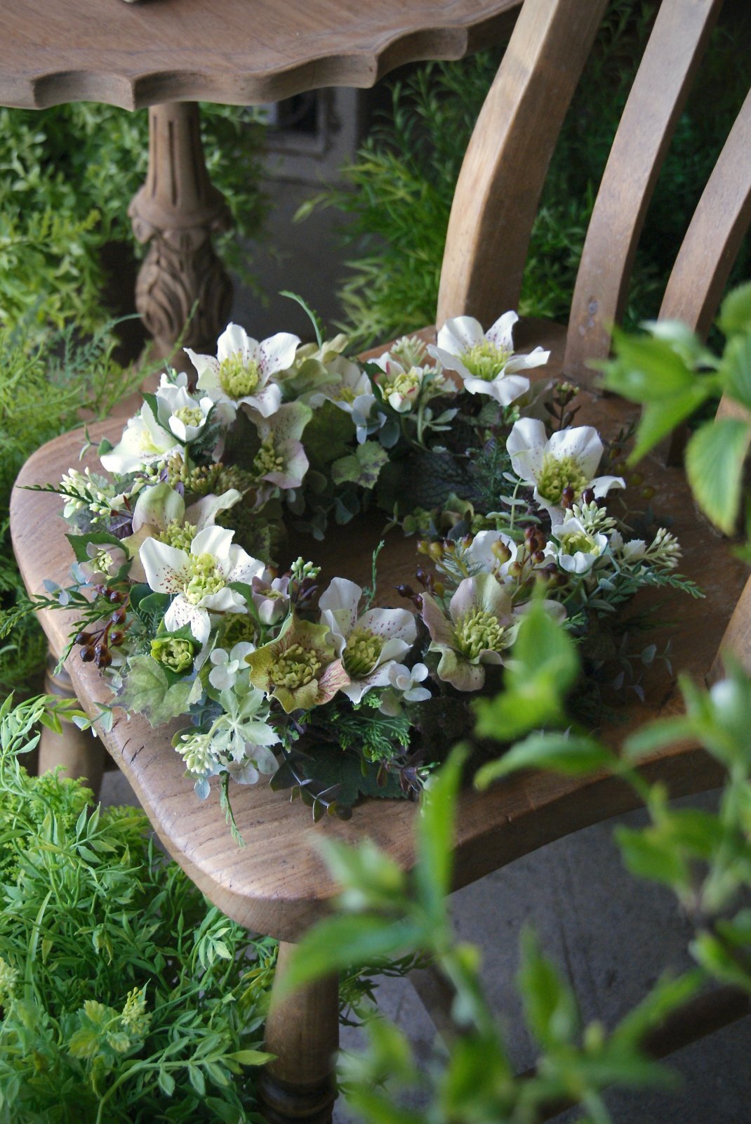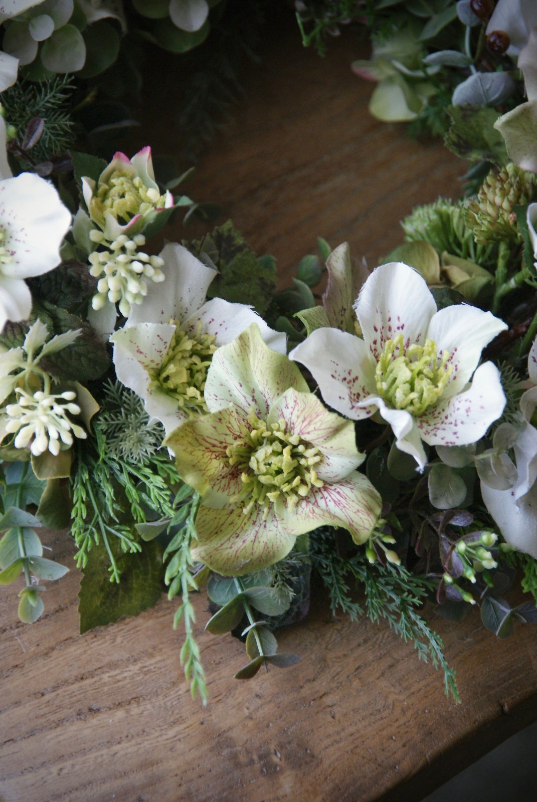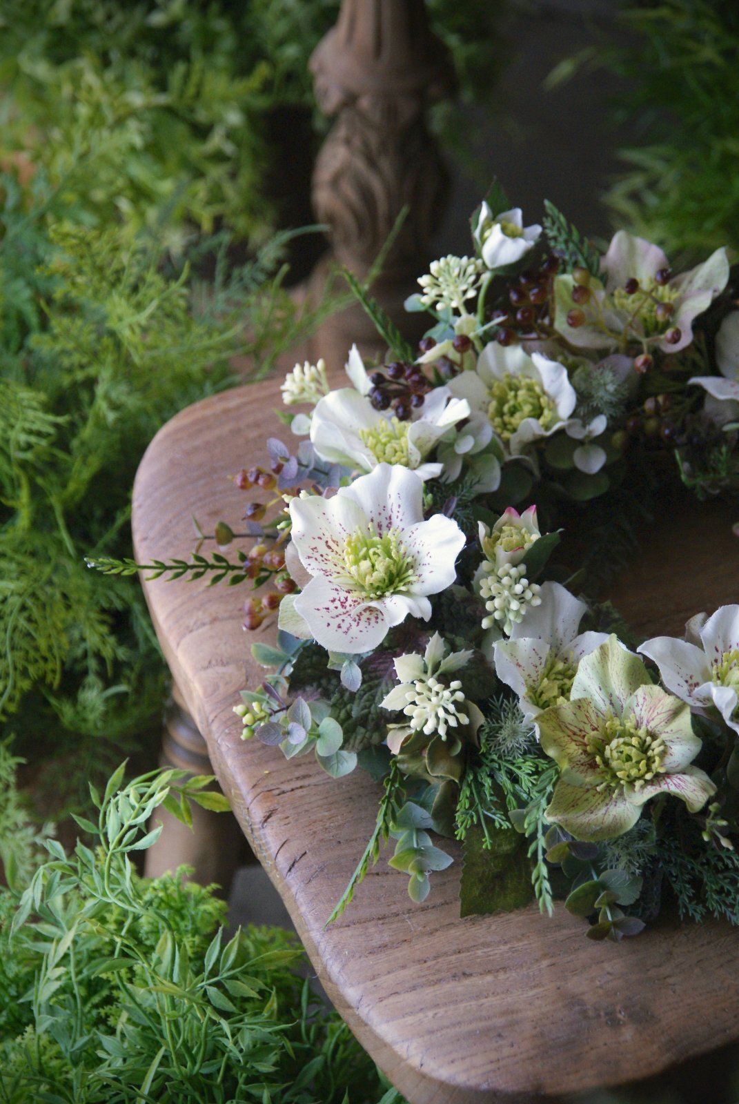 | 花 材 | クリスマスローズ、ベリー、ミント、ユーカリなど |